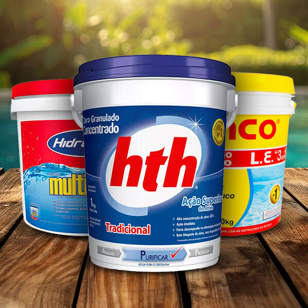 Trabalhamos apenas com marcas renomadas como HTH, Genco e Cris Água, assegurando que cada produto oferecido seja de alta qualidade, para que possa desfrutar da sua piscina com tranquilidade e segurança.